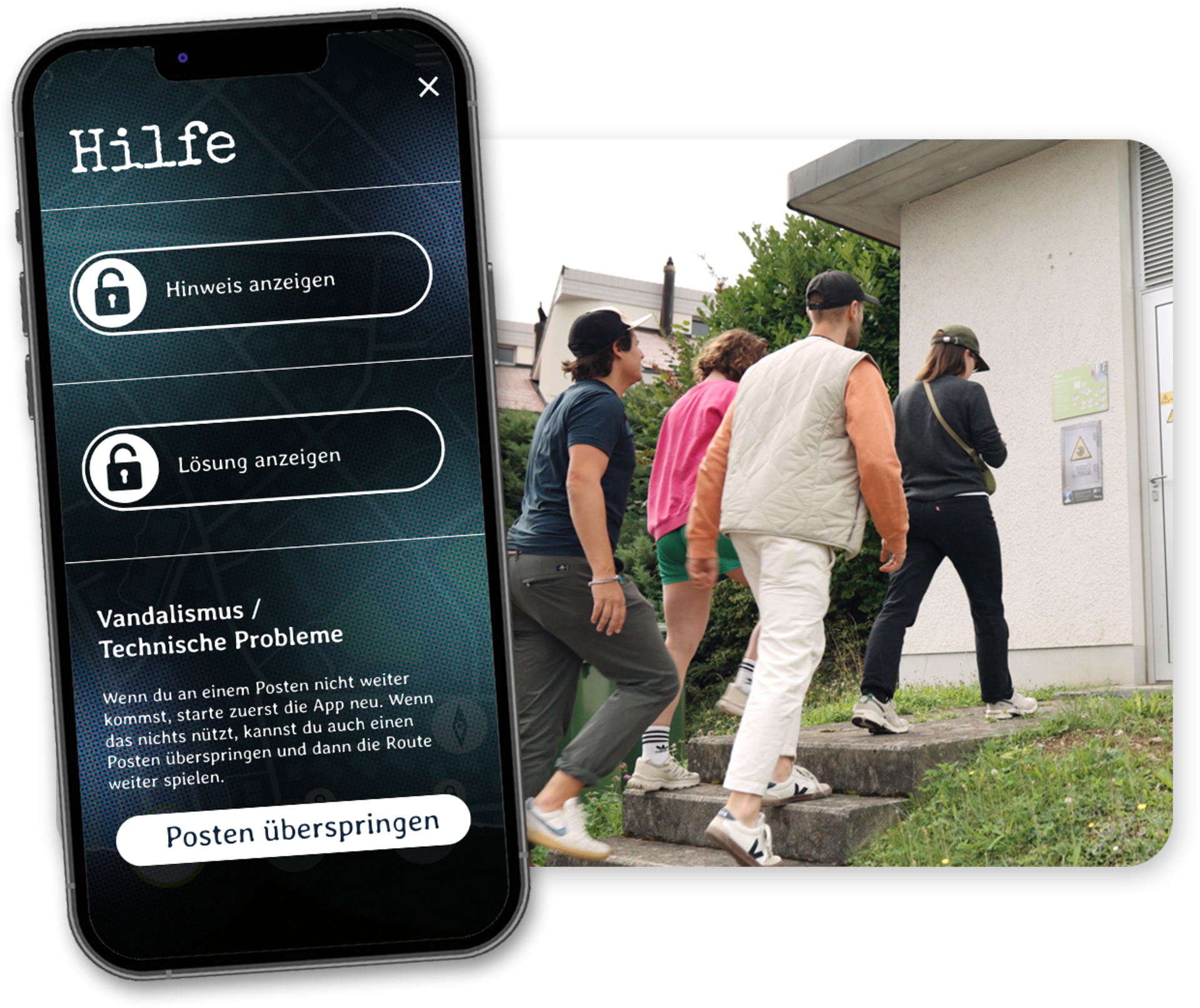 Akte Glattwerk kombiniert Elemente aus Schnitzeljagd oder Outdoor-Escape-Room wie Rätsel, Spurensuche oder Erkundungen mit einer App im Zentrum.
